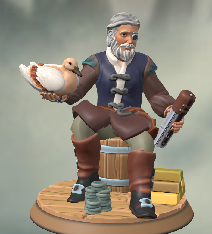is form Chebay Island Dux has a pawn shop in Town of Fish where he buy and sell a assortment of goody’s.